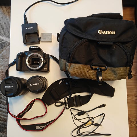 Kuvan mukainen kamera ja objektiivi. Kunto hyvä. Perushuolto tehty toissavuonna kameraliikkeessä ja sen jälkeen ei ole tullut montaakaan kuvaa otettua eli tarpeettomaksi jäänyt. Mielellään nouto.