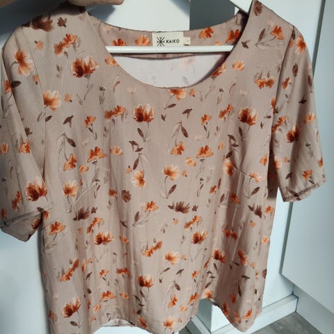 Myydään hyväkuntoinen Kaikon paita (v-neck button blouse). Mustalla pohjalla kukkia. Materiaali 100 % tencel.