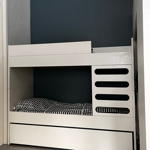 Alhaalla kaiteet, niin alasänky menee vauvasta taaperoon. Kätevä, jos pitää pientä imettää tai nukuttaa, kun aikuinenkin mahtuu nukkumaan.