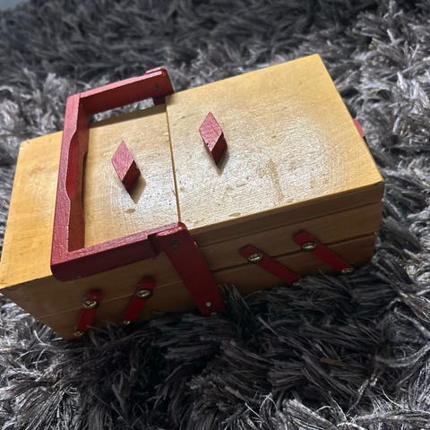 Myydään hyvä kuntoinen puinen Lakkarasia(korurasia). Luultavasti venäläinen. Paksuus 2.5cm, leveys 7.8cm ja syvyys 5cm. Kysy lisää tori viestillä. Nouto/postitus🙏
