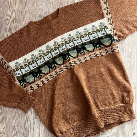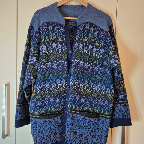 Sirkka Könösen tuotantoa oleva villapusero. Ei kokomerkintää. Kainalo-kainalo 55 cm, olka-helma 72 cm ja kainalo-ranne 54 cm.
