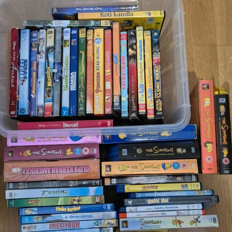 Huikea kokoelma lasten ja nuorten DVD- ja Bluray-elokuvia eri genreistä ja eri vuosilta. Sisältää useita nimikkeitä, jotka sopivat monipuoliseen katseluun. Katso kuvaa tarkkaan niin näet nimikkeet