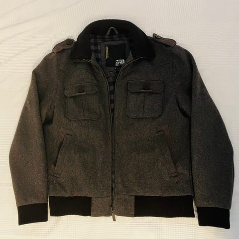 Erittäin hyväkuntoinen Jack & Jones musta villakangastakki. Korkea resorikaulus ja resorit sisähihoissa. Tikkivuori. Tuulisuoja vetoketjulla. Koko L