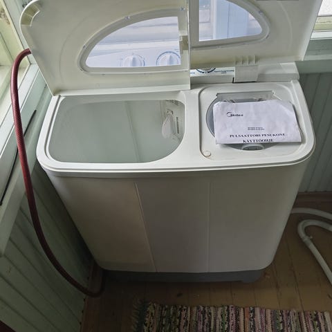 Ihan hyvä pyykinpesukone jää muuton takia ylimääräiseksi. Se toimii oikein hyvin mutta on hieman kovaääninen. Merkki on Rosenlew ja siihen mahtuu 5kg pyykkiä. Nouto Parikkalasta.