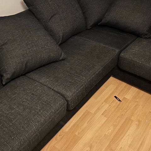 Iskusta aikoinaan ostettu dutti tumma divaanisohva, kätisyys käännettävissä. Tummanruskeat jalat. Rahin saa kiinni runkoon. Kokonais leveys 247cm,istuinosan leveys 198cm,syvyys 95cm,istuin syvyys 74cm,istuin korkeus 42cm,divaani 135cm,selkänojan korkeus 73cm. Istuintyynyt jo väsyneet. Pari reikää vaaleassa kankaassa joka on jousien päällä,siitä kuvia,ei haittaa käyttöä. Ehjät,irrotettavat päälliset vetoketjuilla. Siisti. Savuton lemmikitön koti. Nouto. Ei toridiiliä. Ei hupivarailuja. Ensimmäiselle hakijalle.