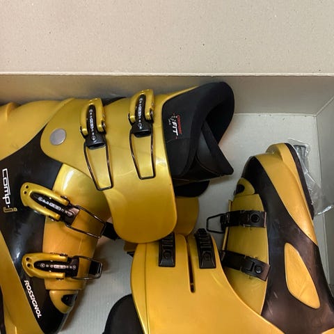 Myydään hyväkuntoiset Rossignol comp jp3 mustat lasten laskettelumonot. Kengän sisämitta 21,5cm ja ulkomitta 255mm. Vastaa kengän kokoa 34-35.