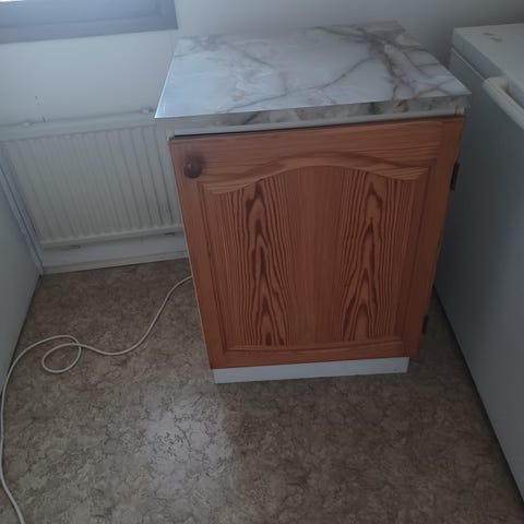 Kaapisto, pituus 217, korkeus 45 ja syvyys 36 cm. Sijaitsee omakotitalon yläkerrassa, joten tarvitsee useamman kantajan. Vain nouto.