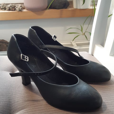 Capezion nahkaiset tanssikengät, koko 7, joka vastaa 37,5. Sisämitta noin 24,5cm. Korko noin 7cm. Hyvä käytetty kunto.