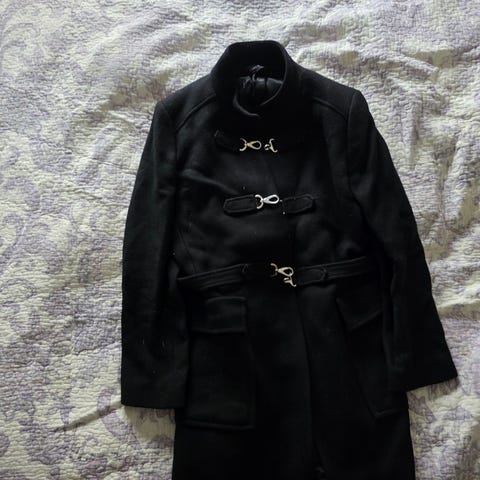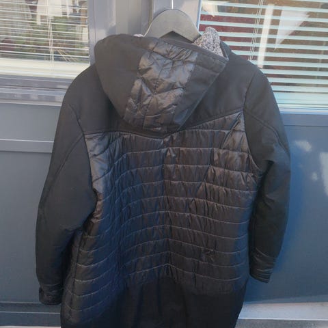 Kuvanmukainen talvitakki. Savuton ja lemmikitön koti.