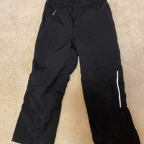 Siistit ja hyväkuntoiset mustat topoahousut, wayerproof 5000. Toisessa lahkeessa saunan liimaus rakoilee, mutta lumilukko moitteeton.