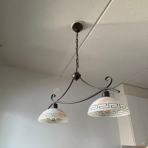 Musta kankainen kattolamppu. Ehyt on, isohko varjostin. Kork. 42 cm ja alhaalta halkaisija 49 cm.