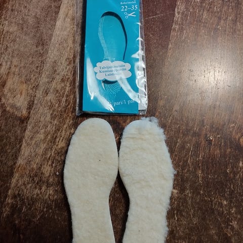 Aidot lampaanvillapohjalliset pienen kenkiin, koko 22-23, raksamitalla 14,5cm. Nouto Rantsilasta (kulkeutuu päiväkodille), tai lähetys toridiilin kautta. Katso myös muut ilmoitukseni, yhdistelen mielelläni postikuluja.