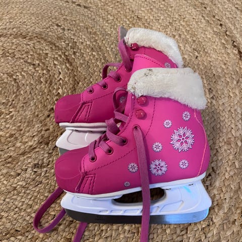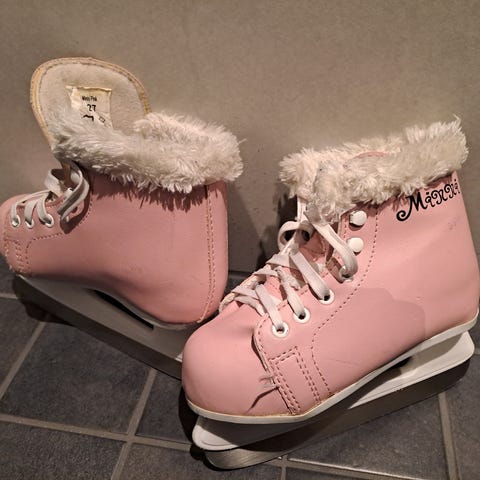 Vaaleanpunaiset Minni-luistimet koossa 28.