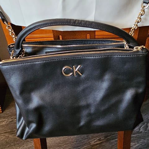Calvin Klein käsilaukku, pientä kulumista, mutta muuten hyväkuntoinen, vetoketju toimii, sisällä 2 pientä taskua molemmilla puolilla.