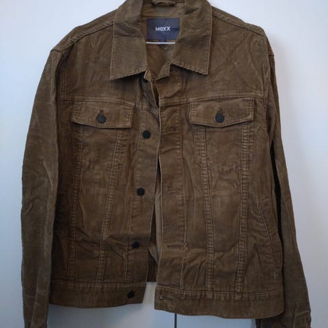 Siisti "lyhyt karvaista" vakosamettia. Farkkutakki mallinen. Vasemman rintataskun nappi irronnut. Näkyy kuvassa