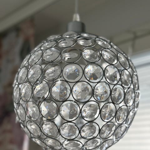 Töpseliliitin kuuluu valaisimeen, ilman lamppua. Johdon näkyvä osa on lyhennetty n 30cm mittaiseksi