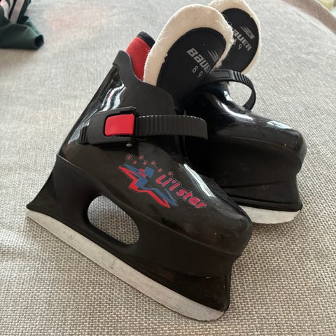 Myydään kahdella lapsella muutaman kerran käytetyt, hyvässä kunnossa olevat Bauerin luistimet. Bauerin koko Y8 vastaa noin kokoa 26. Kuvassa pohjallinen mitattuna.