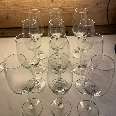 Riedel viinilasit, yhteensä 16 kappaletta. Yhdessä lasissa pieni särö, katso kuvat.