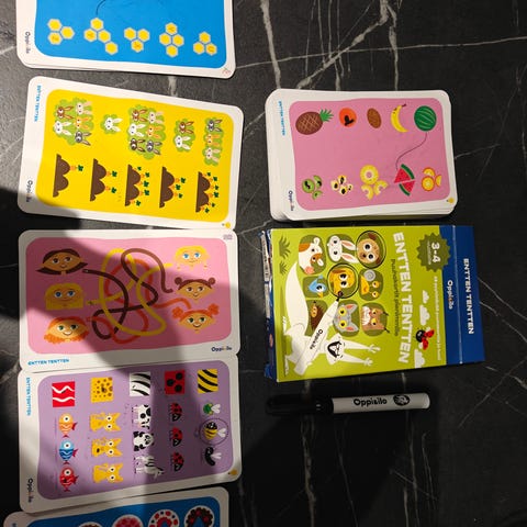 Uudet, ei ole otettu edes paketista pois, minulla oli jo nämä ennestään niin nämä jäivät nyt ylimääräiseksi kun ostin itselleni koko pedasalkun jonka mukana nämä tulivat. Aivan ihanat kortit lasten liikuntaan sekä kotona että varhaiskasvatuksessa.