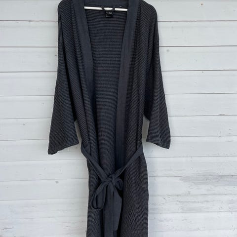 Vähäiselle käytölle jäänyt aamutakki. Kokolapussa merkintä L, mutta minusta reilua mitoitusta, eli menee varmaankin XL-kokoon myös.