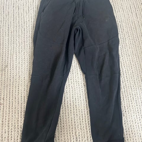 Housut ovat käytetyt, mutta hyvässä kunnossa. Käytön jälkiä näkyy eniten polvissa, joissa hieman kulumaa. Niken logo hieman purkaantunut.