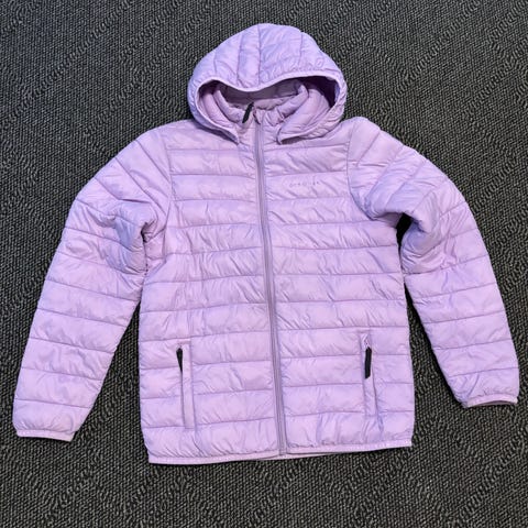 Ocean Works kevyttoppatakki koko 146/152cm. Selkäpuolella ja kyynärpäissä pientä kulumaa, ei haittaa käyttöä.