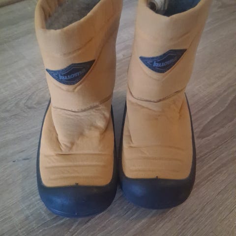 Kuoma lasten talvikengät, koko 25, unisex-malli. Kengissä musta väri ja lämmin vuori. Soveltuvat talvikäyttöön ja tarjoavat suojaa kylmiltä keleiltä.