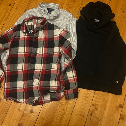 Myydään kaksi poikien pikeepaitaa (kauluksellinen t-paita). Tummanpunainen ja kirkkaansininen.