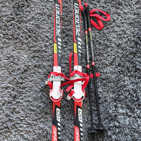 Hyvässä kunnossa olevat lapsen ensisukset hiihtämisen opettelemiseen ja pihahiihtoon.