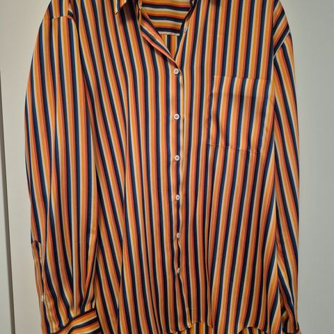 Myydään kaunis satiininen lyhythihainen kauluspaita. Kokolapussa S, mutta on melko oversize, joten menee myös M -koolle. Helmassa sivuilla halkiot. Väri beige/mocca. Kerran käytetty ja kunto lähes uudenveroinen, vain ryppyinen säilytyksestä. Savuton ja eläimetön koti. Postitus onnistuu.