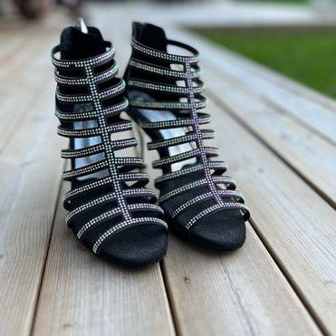Myydään kauniit Dance Steps kengät. Edessä ympyrän muotoinen srassikoru. Vain soviteltu ja todettu jalkaongelman vuoksi liian pieniltä. Nahkaa, ulkopohja säämiskänahkaa, jonka pinnalla suojateipit paikoillaan. Kuitti tallessa (94 e)