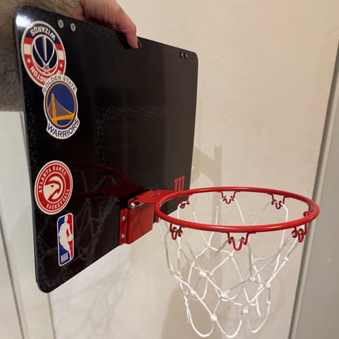 Minikoripallosetti. Voidaan kiinnittää helposti oveen tai seinään. Paino: 300 grammaa.