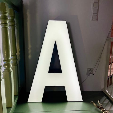 Ihana, iso valokirjain. Toimii, myös kytkin