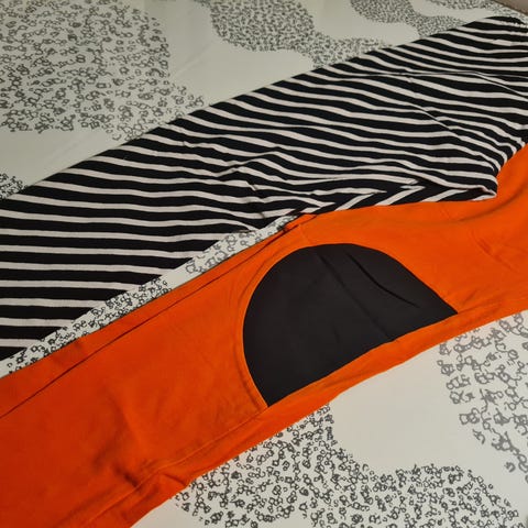 Kolmet legginsit seuraavalle, Myyn kaikki yhdessä. Näissä kaikissa on koko M, mutta minusta nämä on aika naftit ja menisi paremmin S-kokoiselle. Neulomon musta-valkoraidalliset legginsit ovat oikein siistissä kunnossa. Punaisista Papun legginseistä olen muutaman reiän paikannut haaroista. Keltaisissa Papun legginseissä on pesunukkaa/nyppyä mutta yleisilme siisti niissäkin.