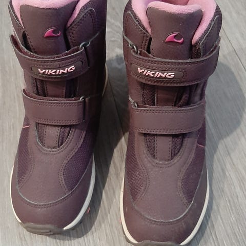 Violetit Vikingin talvikengät kokoa 36. Meille uutena ostettu ja niitä on käytetty vähänlaisesti yhden talven ajan. Tarrat pitää hyvin.
