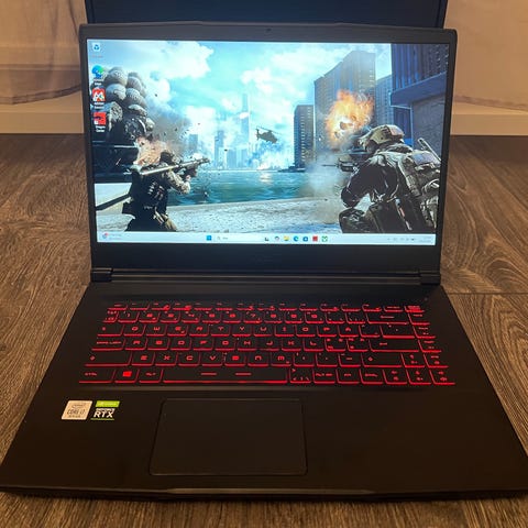 MSI kannettava tietokone, jossa on Intel Core i7-10750H -prosessori 2,60 GHz, 16 GB RAM-muistia ja 6 GB näytönohjainmuistia. Musta väritys.