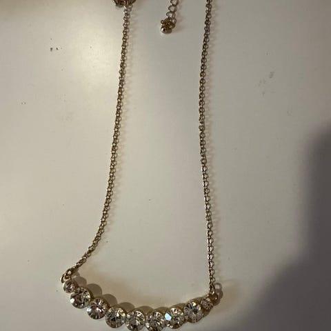 Iberon kaunis kaulaketju ja pieni ”timanttiriipus”. Ketjun materiaali jonkinlaista korumetallia, ”timantti” jonkinlaista korukiveä. Ketjun pituutta voi säätää, mitat n. 44 - 48 cm. Riipuksen halkaisija n. 0,5 cm. Riipuksen saa irrotettua, jolloin ketjuun voi halutessaan vaihtaa eri riipuksen. Ketju on kaunis sellaisenaankin ilman riipusta. On todella siistissä kunnossa, kuin uusi. Kiven alaosassa tuntuu vähän jotain terävää, mutta mielestäni se ei tunnu käytössä / kaulalla. Hinta 5€. Nouto Espoo / Helsinki (esim. Lippulaiva / Espoontori / Sello / rautatieasema / Kamppi). Voin myös postittaa, jolloin postituskulut lisätään hintaan. Tori-diili tai tavalliset kaupat.