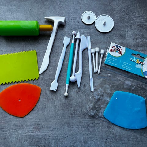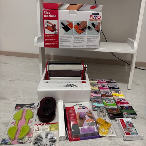 Kaksi arvaamatonta pakkausta vaaleanpunaista Fimo-massaa.