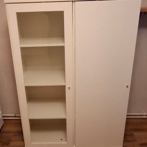 Toisesta kaapista puuttuu taustalevyn kiinnikkeet ja 2 kpl saranan ruuvia.