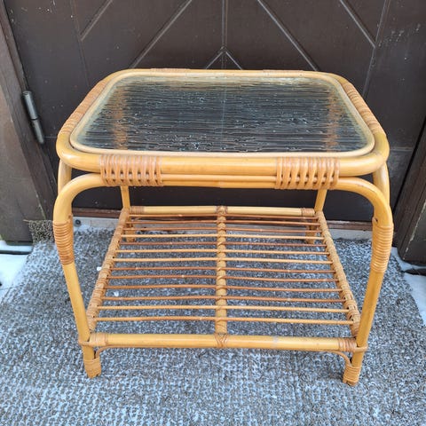 Uuden veroinen Pöytä rottinkia, kansi koristelasia. Nouto Pohjoi-Haagan Asemalta, arkipäivänä klo 8-17,la klo 10-16