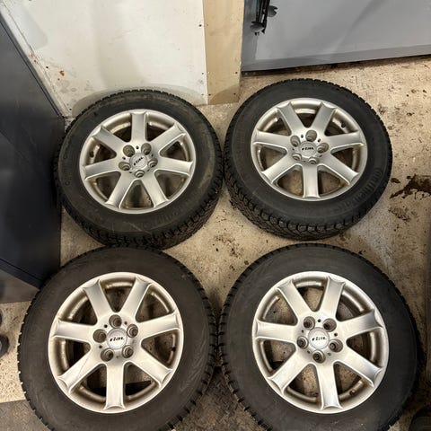 Hyvä kuntoiset nastarenkaat alumiinivanteilla.