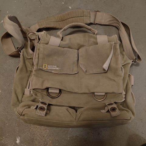 National Geographic Earth Explorer 2476 olalla kannettava kameralaukku, jossa tilaa useammalle objektiiville ja tarvikkeille. Käytön jälkiä jonkin verran, mutta täysin käytettävässä kunnossa.