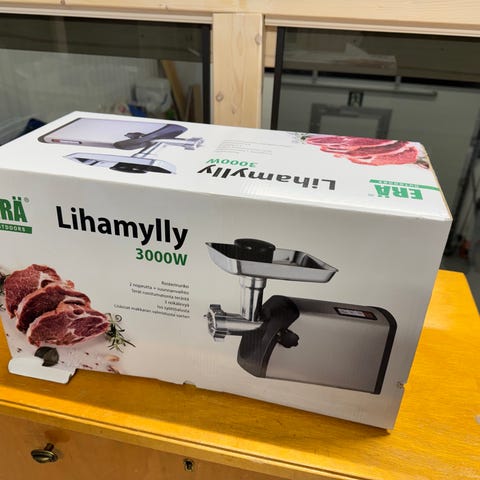 Laadukas Tsekeissä valmistettu perinteinen ja käsikäyttöinen lihamylly koossa 8. Setissä reikälevy 4 mm. Lihamylly jauhaa niin jauhelihat, makkarat, kalamurekkeet kuin kasviksetkin. Mukana myös makkarasuppilosettiä. Paino 2,925 kg. Nouto. Jos lähetys ostaja maksaa kulut. Hinta 70 e.