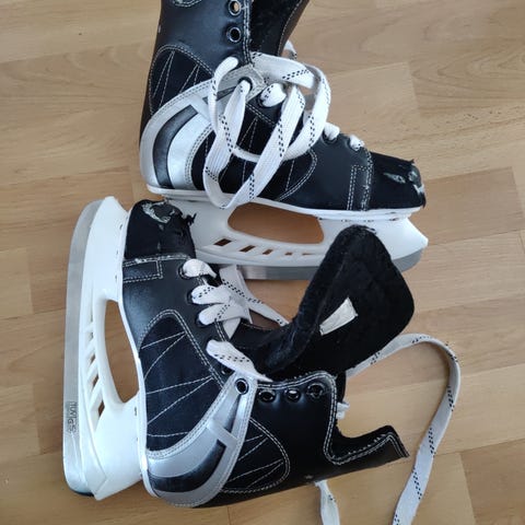 jääkiekkoluistimet, koko 38. Väri musta. Soveltuvat jääkiekon harrastamiseen. Sisämitta 23.5cm. viime talvena teroitettu. Luisteltu muutaman kerran.