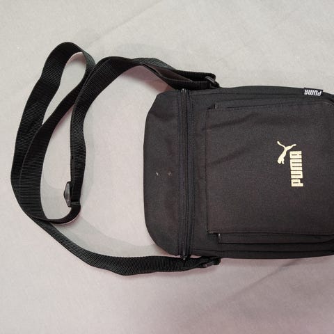 Musta Puma olkalaukku. L40cm, K29cm, S14cm.