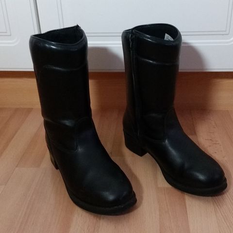 Käyttämättömät naisten kotimaiset, nahkaiset, vuorelliset talvisaappaat. Pukemista helpottavat vetoketjut. Hintaan lisätään toimitusmaksu.