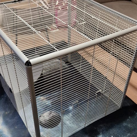 Myydään käytössä ollut, mittatilaustyönä teetetty lasikko critter nation / ferret nation häkkiin.