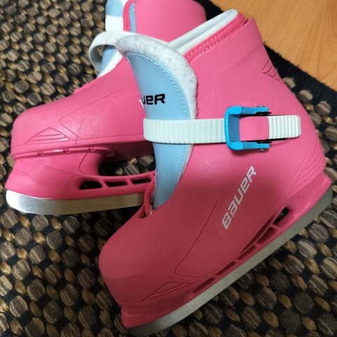 Bauer lasten luistimet, koko 28-29. Väri pinkki. Ollut käytössä yhdellä lapsella.