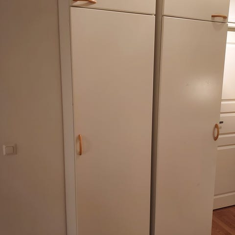 Hyväkuntoinen vaatekaappi. Todella painava! Peiliovien takana tanko sekä hylly, joka ei ole paikoillaan kuvassa, mutta tulee mukaan. Vetolaatikko. Vain nouto Kotkansaarelta, omat (vahvat!) kantajat mukaan.