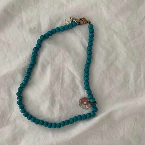 Snö of Sweden ihana koru / kaulakoru. Koru koostuu turkooseista turkoosikivistä, yhden kiven pituus n. 1,5 cm ja leveys n. 1 cm. Kivien välissä on aina pieni metallinen osa. Korun kokonaispituus n. 128 cm ja korkeus n. 61 cm. Korua voi pitää myös kaksinkerroin. On todella siistissä kunnossa. Hinta 40€. Nouto Espoo / Helsinki (esim. Lippulaiva / Espoontori / Sello / rautatieasema / Kamppi). Voin myös postittaa, jolloin postituskulut lisätään hintaan.